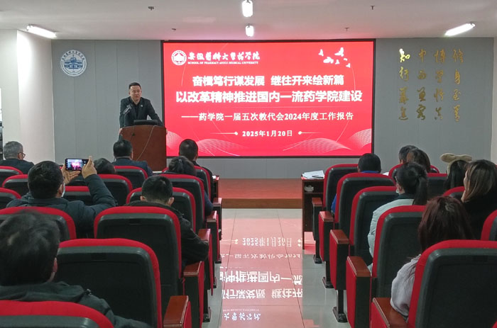 孟曉明在題為《奮楫篤行謀發(fā)展 繼往開來繪新篇 以改革精神推進(jìn)國內(nèi)一流藥學(xué)院建設(shè)》的工作報(bào)告中,全面回顧了一年來學(xué)院堅(jiān)持黨建領(lǐng)航、深化教學(xué)改革、加強(qiáng)學(xué)科建設(shè)、聚焦科研賦能、踐行立德樹人使命、發(fā)揮工會(huì)校友作用等6個(gè)方面的工作,在總結(jié)成績和經(jīng)驗(yàn),分析不足和差距的基礎(chǔ)上,對(duì)2025年的工作作了展望和部署。
