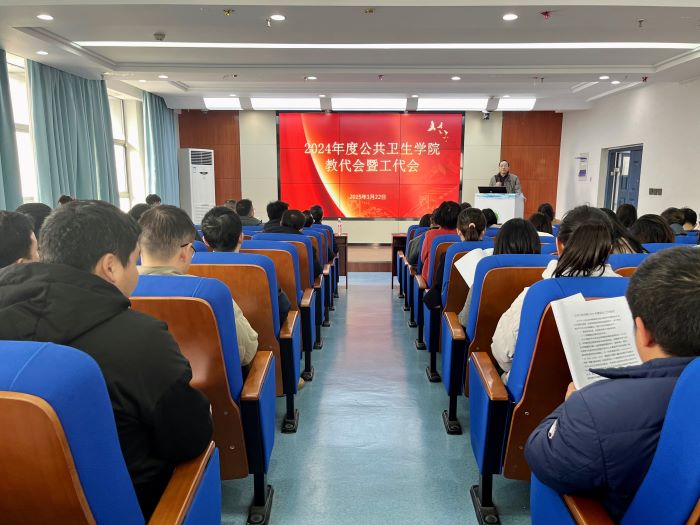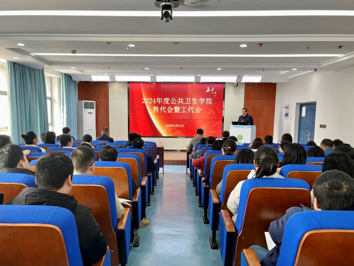 1月22日,公共衛(wèi)生學(xué)院召開2024年“兩代會”暨教職工大會,院黨委書記馬軍成主持會議,院長王華作工作報告。