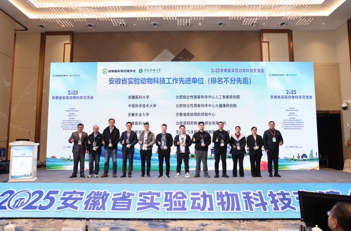??萍籍a(chǎn)業(yè)部部長、安徽省實驗動物學會理事長王華主持開幕式。會上對全省10家先進單位及14名先進個人進行表彰,我校獲得“先進單位”稱號,杜天璽獲得“先進個人”稱號。