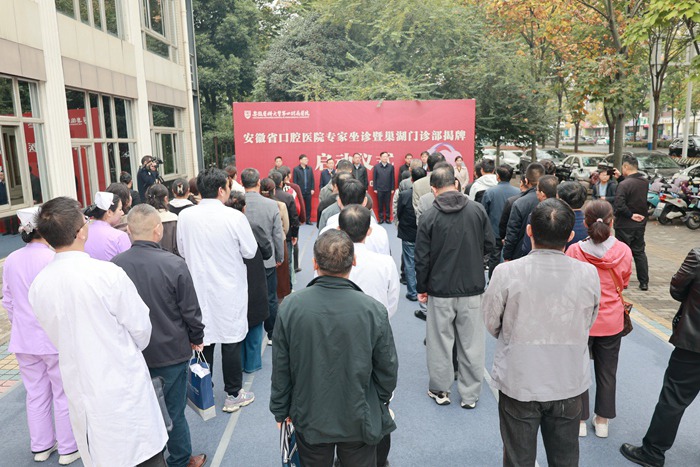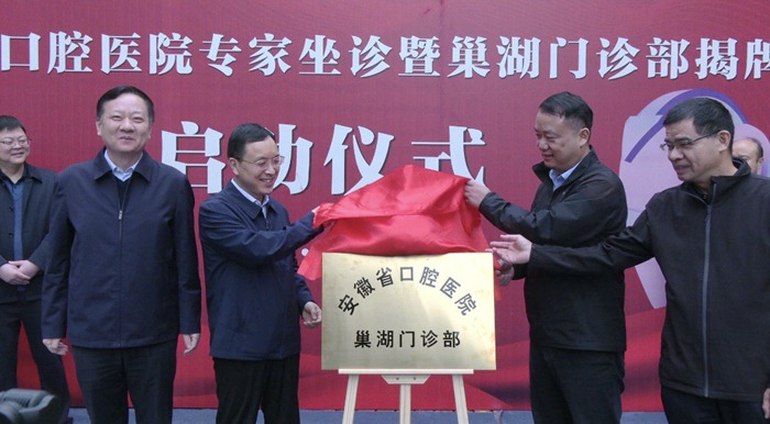 11月6日上午,安徽省口腔醫(yī)院專家坐診暨巢湖門診部揭牌啟動儀式在第四附屬醫(yī)院口腔醫(yī)學中心門前廣場舉行。第四附屬醫(yī)院黨委書記周典,院長謝棟棟,附屬口腔醫(yī)院(安徽省口腔醫(yī)院)黨委書記劉頎,院黨委副書記、院長王元銀及兩院醫(yī)護代表參加儀式。啟動儀式由謝棟棟主持,相關領導共同為“安徽省口腔醫(yī)院巢湖門診部”揭牌。